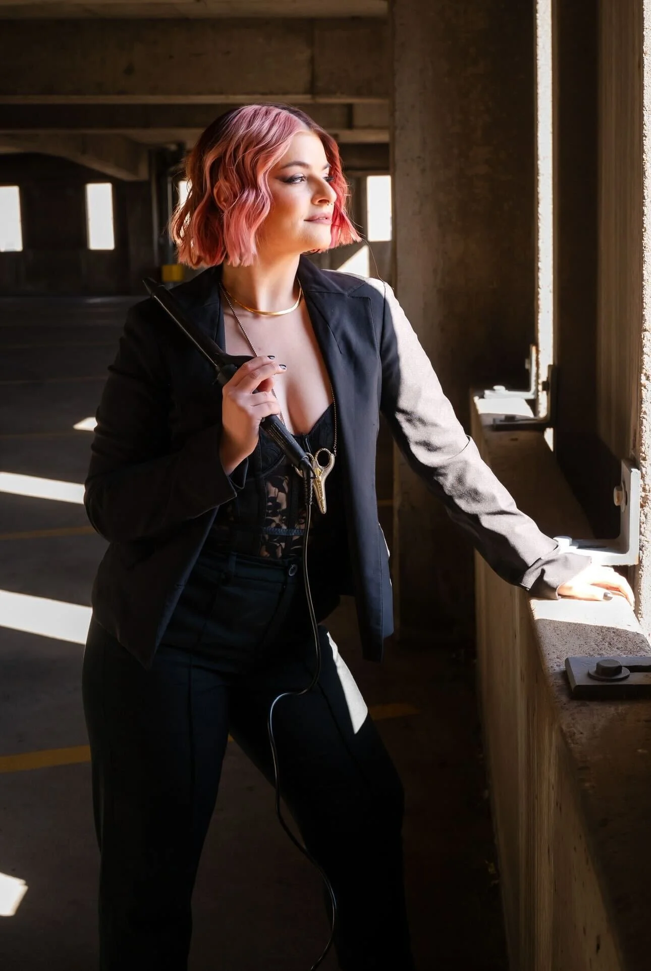 RJ has been working in hair for over 10 years and takes pride in her craft and the vibrant community she has grown alongside. She specializes in any and all color, fun and funky extensions, and confidence-boosting cuts.