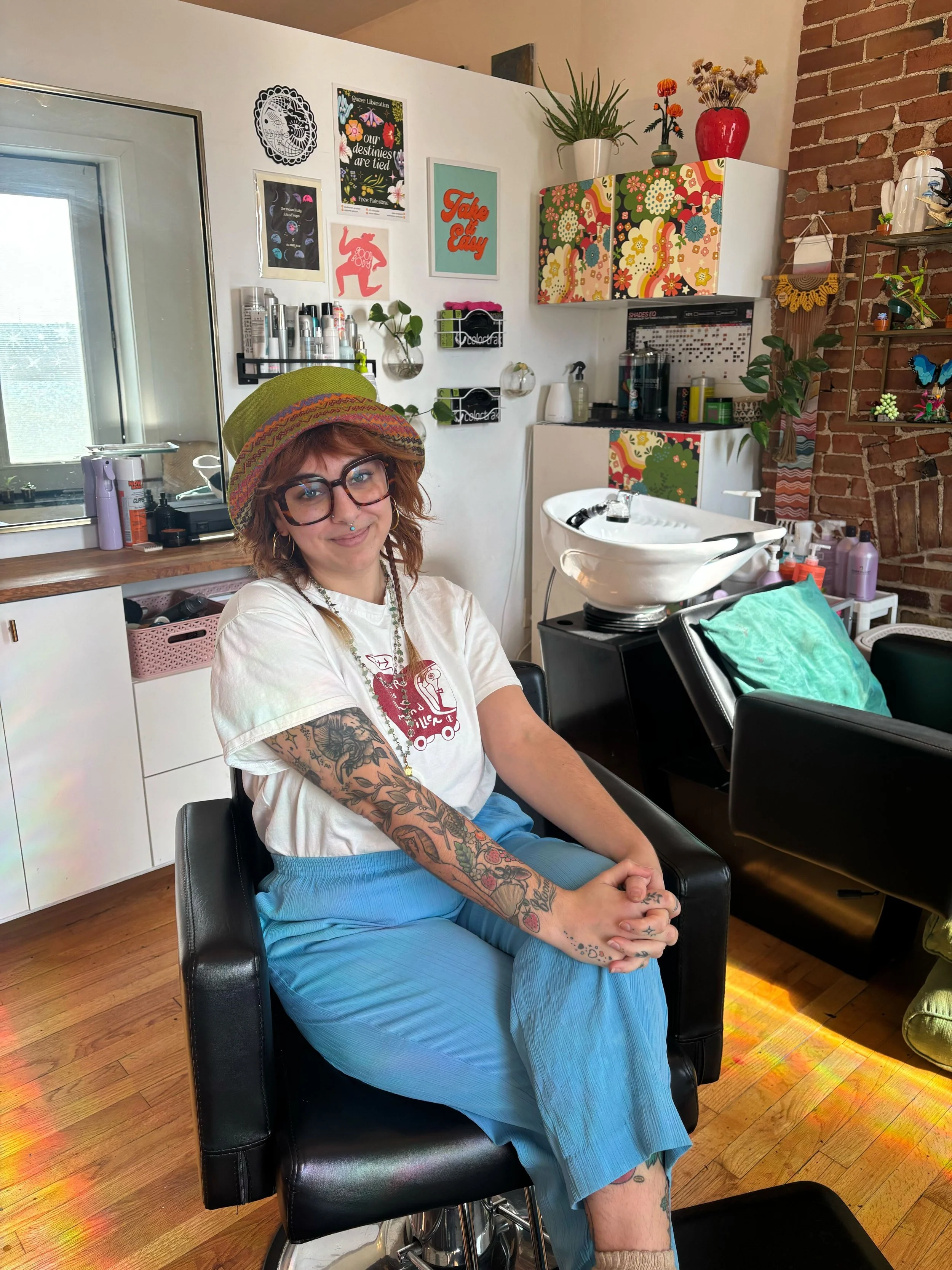 Her studio is queer-friendly, covid conscious, and intentionally peaceful. She provides a welcoming salon space open to all with every nook of her space promoting joy.